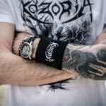 Black wristband, white thread